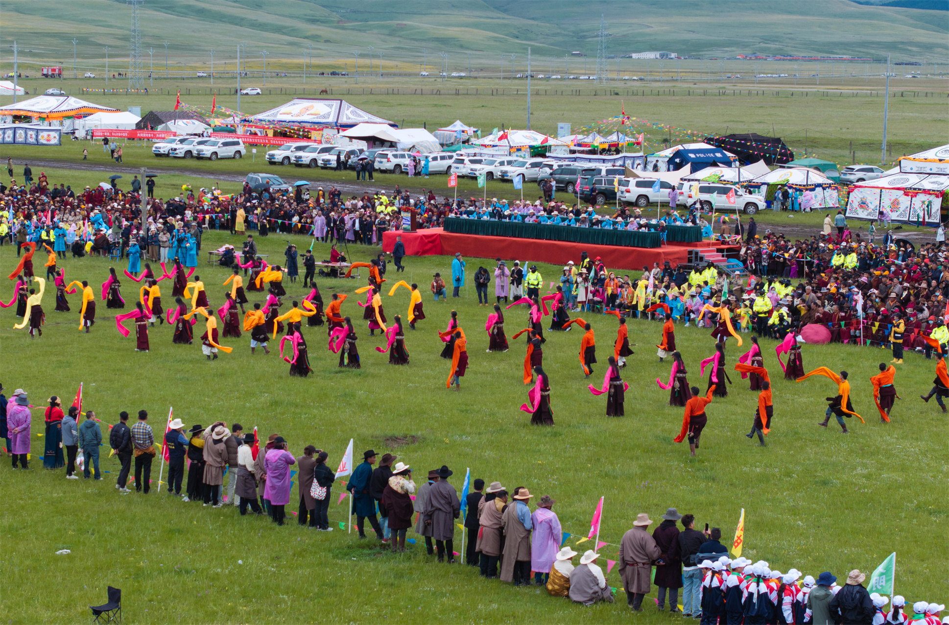 7月27日,四川省甘孜藏族自治州白玉縣第二屆“盛德白玉·草原最?!编l(xiāng)村民俗文化活動在阿察鎮(zhèn)日通草原啟幕。文藝匯演、牦牛選美、擠奶比賽、賽馬等活動在接下來兩天里將輪番上演,吸引當(dāng)?shù)啬撩窈捅姸嘤慰颓皝碛^賞。