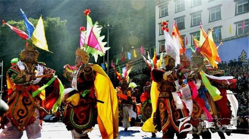 十七世紀時,丹巴巴底大坪村阿洛、益西降稱等喇嘛去西藏學經(jīng),求學期間,征行九世班禪同意在日喀則扎什倫布寺學習藏戲,學了《呷拉翁布》(另名《卓瓦桑姆》)和《甲扎共龔》(譯為《文成公主》)二劇的唱腔、鼓鈸奏法、表演技巧,帶回巴底黃金寺,挑選寺中30余名僧徒成立黃金寺藏戲團。此后,每年都在規(guī)定時間演出。丹巴中路藏戲,是中路寺廟喇嘛去西藏學經(jīng)時帶回的。