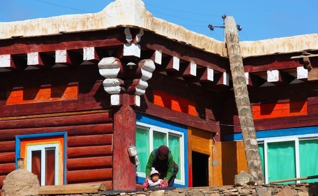 民居的基礎多為長方形,二樓呈L型、凹型或回型。建筑的內(nèi)層結(jié)構(gòu)均以木材料為唯一的建筑材料。整座房屋用“棒柯”、“棒勒”裝修成主人或客人的臥室、儲藏室、經(jīng)堂、客廳(有的分設漢式和藏式兩廳)、廚房、走廊、陽臺、廁所。陽臺外圍墻上均建小型熏煙臺,屋頂有頂幡塔。頂蓋用樺樹皮或硬雜木條墊底,再鋪“阿嘎土”而成,日曬雨淋絕不漏水,經(jīng)久耐用。屋架門窗外表裸露部分,多以油漆或自制有色土染色,做到防腐防蛀美觀大方。一般而言,道孚民居的大框架,費不了多少工時。當建房的材料備齊后,主人就請喇嘛打卦,擇一良辰吉日動工。
