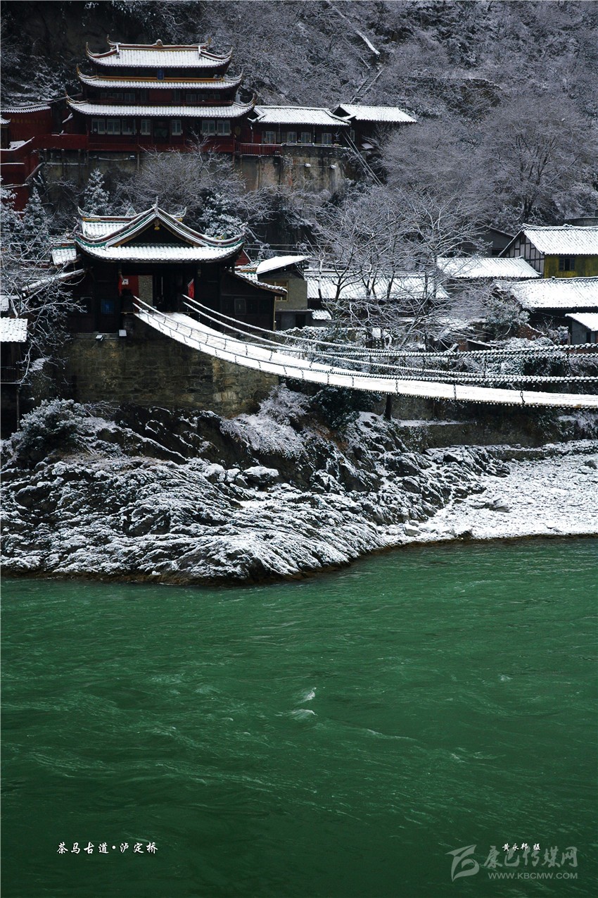 瀘定橋又稱為鐵索橋,是中國(guó)古代橋梁建筑的杰作,建成于康熙45年(1706年)??滴跤P題寫“瀘定橋”,并立御碑于橋頭,橋長(zhǎng)103.67米,寬3米,十三根鐵索鏈固定在兩岸橋臺(tái)落井里,猶如十三條巨蟒橫空出世,經(jīng)歷歲月風(fēng)雨,穿越歷史煙云,無聲地訴說著往事。站在瀘定橋上,洶涌的大渡河水從腳下奔騰而過,橋體不規(guī)則晃動(dòng),蕩秋千似的,“大渡橋橫鐵索寒”的“寒”字,不到現(xiàn)場(chǎng),根本無法體會(huì)其真正含義,飛奪瀘定橋,譜寫了一曲長(zhǎng)征途中“驚、險(xiǎn)、奇、絕”的戰(zhàn)斗奇跡,也使瀘定橋成為中國(guó)革命重要的歷史紀(jì)念地之一。