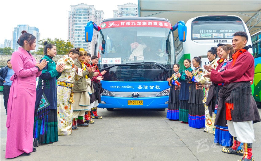 景區(qū)直通車(chē)授牌儀式和自駕游車(chē)隊(duì)授牌儀式也是本次推介會(huì)的亮點(diǎn)。兩項(xiàng)儀式旨在進(jìn)一步方便廣大游客到九龍旅游,并開(kāi)啟成都直通九龍旅游及運(yùn)輸融合發(fā)展的歷史征程?,F(xiàn)場(chǎng),貼有“穿越藏彝走廊,體驗(yàn)民俗風(fēng)情”和“甘孜九龍旅游直通車(chē)”車(chē)標(biāo)的汽車(chē)引得不少人注目,有的還當(dāng)即向工作人員咨詢票價(jià)、路線。