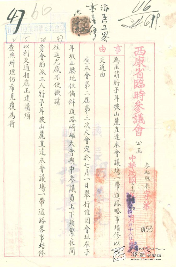 1938年,在子耳坡山腳、如今的州委黨校的地址上,“西康省建省委員會”修建了一幢本意是用來作為接待過往達官貴人的“籌邊別墅”。這是幢一樓一底的木石結構建筑,當年是康定城最氣派的建筑。1939年,西康省臨時參議會成立,沒有會址,沒有辦公地點,新成立的西康省政府便把“籌邊別墅”撥給西康省臨時參議會作為會址。但是要從城里走到子耳坡山腳,最近便的道路是從中橋附近轉到當時的茶店街(現(xiàn)在的建設路靠東的一段),再沿山往上行。由于是土路,亂石遍地,不好走。于是,當時的參議長胡恭先親自動筆,至函“西康省會市政建設整理委員會”要求整修這條小道。這里的文字檔案記載的就是這件事。