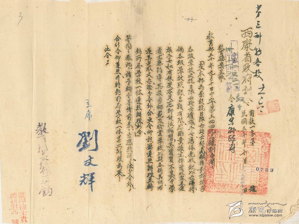 劉文輝簽文:“各級學校優(yōu)先收錄抗日陣亡將士遺族。