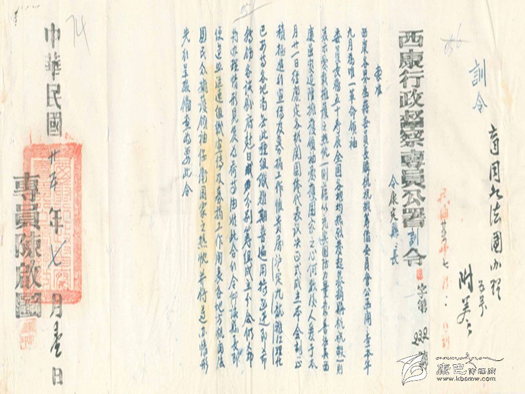 今天對這份“訓令”有必要說明的是,一、當時所謂的“中山臺”在西康省政府院內,在平時是作為升旗的地方;二,所說無名英雄紀念碑當時修在何處待考,極有可能這里說要去奠基的這座紀念碑就是抗戰(zhàn)勝利后的“抗日陣亡將士紀念碑”;除了對市民的“訓令”,對康定城中各寺廟也發(fā)出“訓令”,其令內容為“令:峨巴寺、撒家寺、奕龔寺、杜渣寺、宋喇嘛、大教場奪吉扎寺、南無寺、彌勒院、清真寺、圣喻廟:查7月7日(舊歷6月初10日),為抗戰(zhàn)建國紀念日,除舉行公祭陣亡將士及殉難國民,合行令仰遵照。于是日集合全體誦經超度,虔誠祈禱是為至要。此令”。