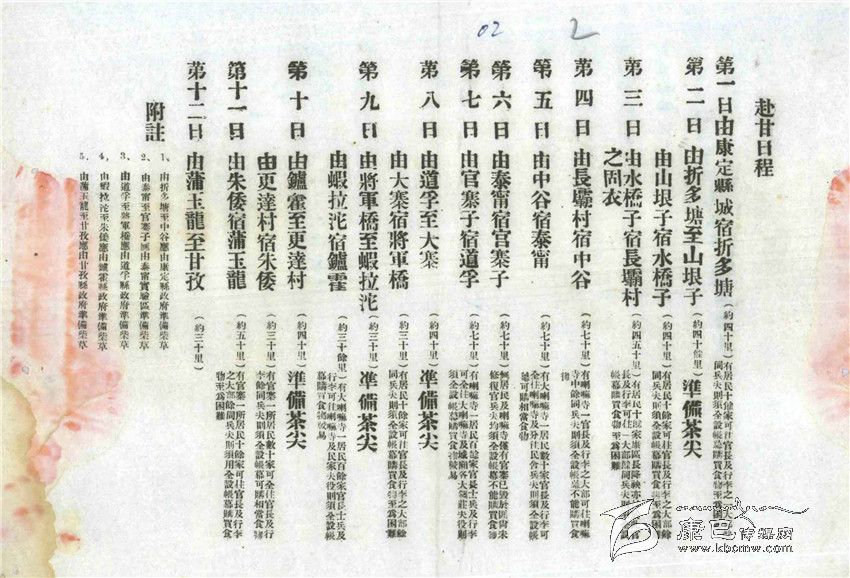 為了安排好戴院長一行的行程,西康建省委員會專門發(fā)出了一份“訓(xùn)令”。這份時(shí)間表就是根據(jù)“訓(xùn)令”要求為戴院長行程作出的安排。每天從何地到達(dá)何地,里程多少,休息地有無村莊、寺廟,接待力量如何、是進(jìn)房屋休息還是支帳篷都有說明,而且對沿途各縣各地提出了包括應(yīng)準(zhǔn)備柴草、應(yīng)在哪些地方準(zhǔn)備“打尖茶”(午飯)等具體要求。