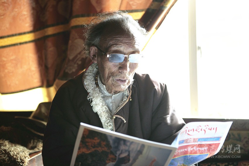 彭措郎加正在閱讀本報的《康巴印畫》雜志。