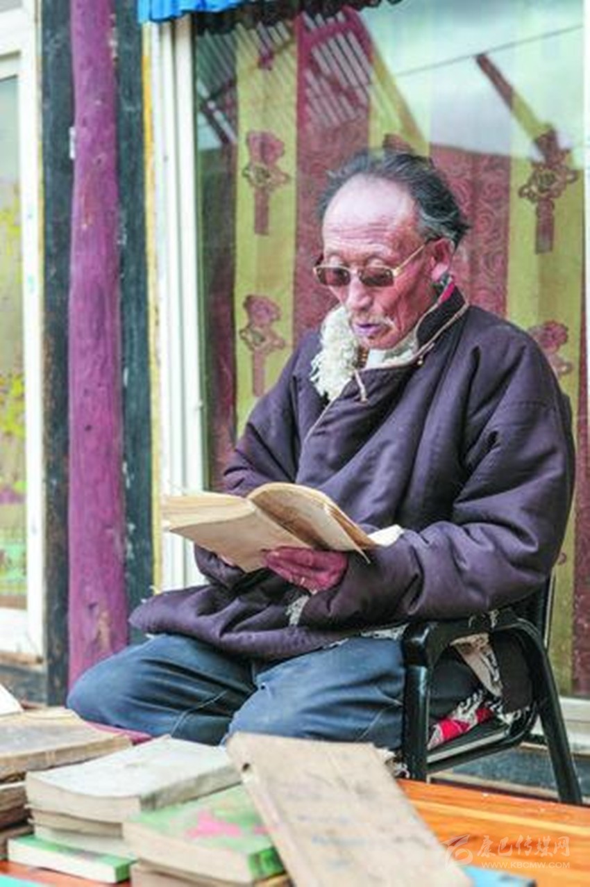 余音繞梁、鳴金收兵,天造地合的佳話叫人回味無窮。面對還沉浸在烽火邊關與兒女情長中的老人,真有一種不忍打擾的感動。幾十本從八十年代到二十一世紀由西藏、甘肅、青海、四川等民族出版社出版的各種藏文《格薩爾王傳》書籍,雖然有的邊角磨損嚴重,有的封面封底用塑料薄膜一針一線串起,卻沒有一本掉頁,更不要說有污漬灰塵了,揣摩著那一本本厚薄不一的書籍,如數(shù)家珍般逐一介紹書中的內(nèi)容,就算間隔30多年都還記得買書時的場景,足見老人對它的情有獨鐘。