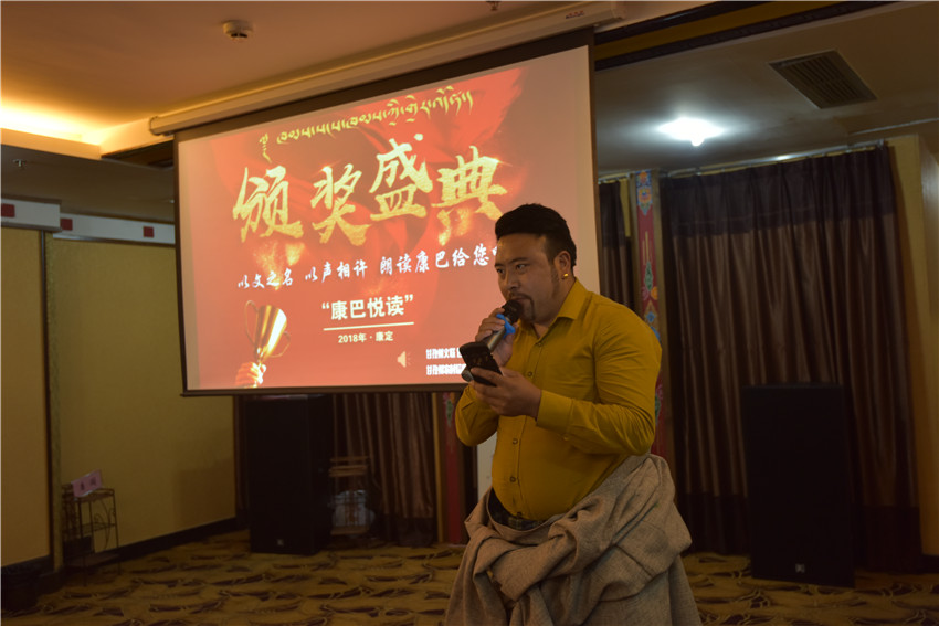進(jìn)入會(huì)場(chǎng),多媒體屏幕上,“《康巴·悅讀》頒獎(jiǎng)盛典”幾個(gè)字在紅色背景的襯托下格外醒目,所有與會(huì)人員,無(wú)論血?dú)夥絼?、溫柔恬靜還是年逾花甲,都是僅僅有序,按座簽依次入坐。