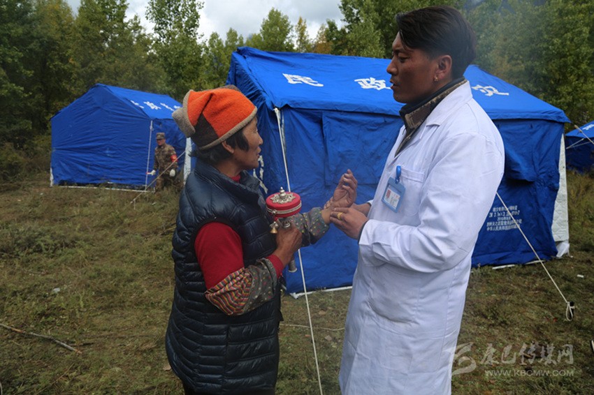 醫(yī)務(wù)人員為安置點(diǎn)群眾進(jìn)行健康檢查。