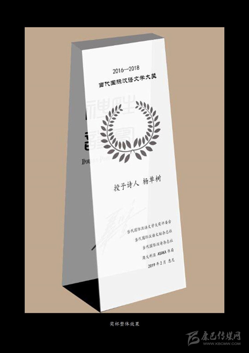 “當(dāng)代國(guó)際漢語(yǔ)文學(xué)大獎(jiǎng)”獎(jiǎng)杯。