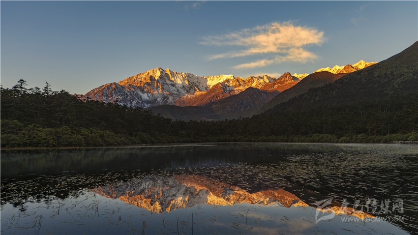 窗外,飄散的雨珠無邊無際地紛飛,抬頭仰望深邃的夜空,不禁思想起飛機抵達甘孜的那一刻——舷窗外,云層如棉絮般靜語緩流,遙遠的云端盡頭,陡然出現(xiàn)了一座壁立千仞、直插云霄的巨大錐形山峰,其上覆蓋著潔白冰雪,反射著金色的陽光……