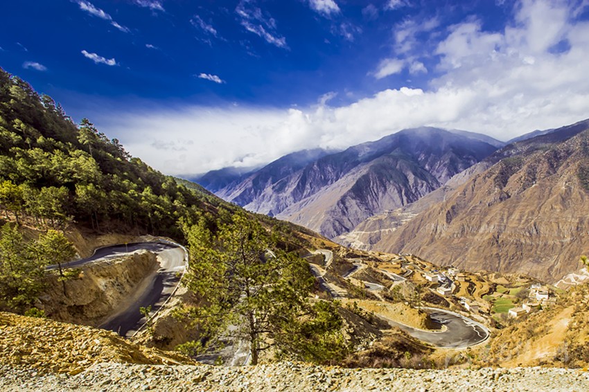 如今,所有鄉(xiāng)村通了硬化路,橫跨在金沙江上的十余座跨江大橋氣貫如虹,天塹變通途。過(guò)去我們下鄉(xiāng)時(shí),從日雨到曲雅貢,只有一條從因都?jí)伪澈蟮陌肷窖贰In茫大山,路上幾乎看不見(jiàn)一顆大樹(shù),也找不到一滴水源。從山腰看江畔的因都?jí)?,只有兩戶人家,幾株綠樹(shù)總令焦渴難耐的我們望“綠”興嘆!下山走到金沙江邊,熾烈陽(yáng)光從河灘上反射,火辣辣照在臉龐和皮膚,熱浪令人窒息,感覺(jué)目的地遙不可及?,F(xiàn)今,干部下村完全不需要走路,走路下鄉(xiāng)對(duì)年輕人來(lái)說(shuō)簡(jiǎn)直不可思議。公路像一條飄帶環(huán)繞山間,使散落在峽谷中的村寨愈發(fā)展現(xiàn)出欣欣向榮的新風(fēng)貌。