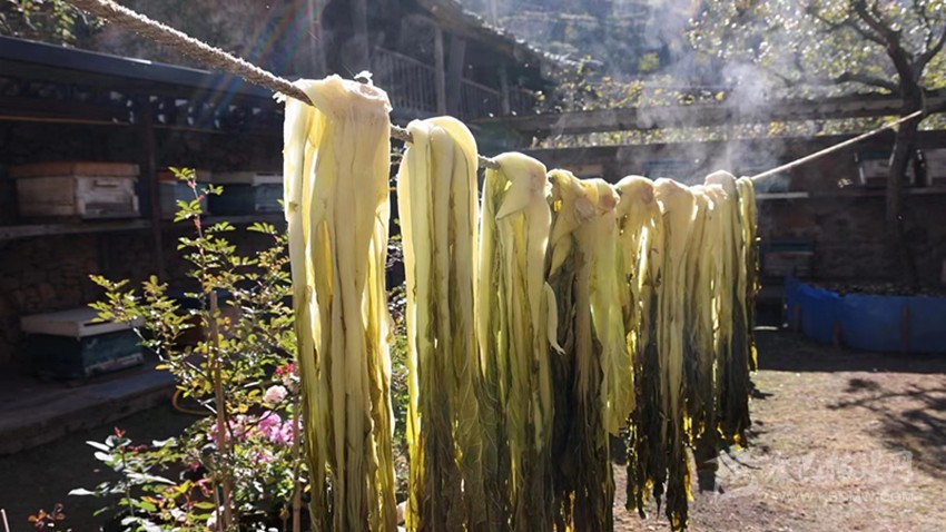 晾曬鹽白菜。
