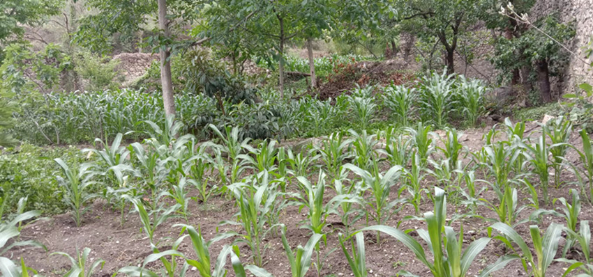 種滿玉米的茶倉(cāng)遺址。