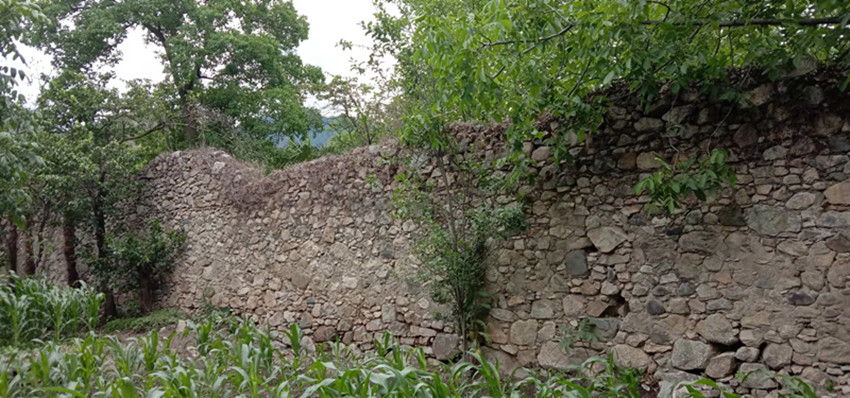 在鄧明前老師的帶領(lǐng)下,記者沿小路往大渡河方向而行,不久即看到一面石頭砌成的圍墻。鄧明前老師說(shuō),那即是茶倉(cāng)遺址了。