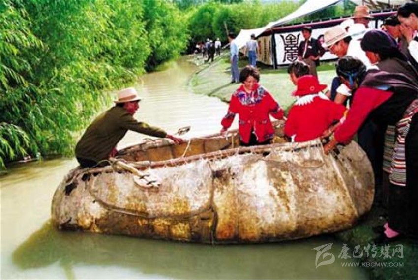 牛皮船,顧名思義是牛皮做的船,做牛皮船的材料很簡單,只用木料和牛皮。木頭要選用韌性較好的樹木做骨架,把泡軟、牛毛基本褪凈的4張牦牛皮縫起來,并將濕牛皮包在木骨架上繃好,用牛皮繩子捆緊、曬干、擦油定型,再把牛皮縫口接頭處擦抹大量牛、羊油以便將接縫密封,避免進(jìn)水,再配上一對劃槳,就可以下水使用了,一只牛皮船只需一個(gè)船夫。