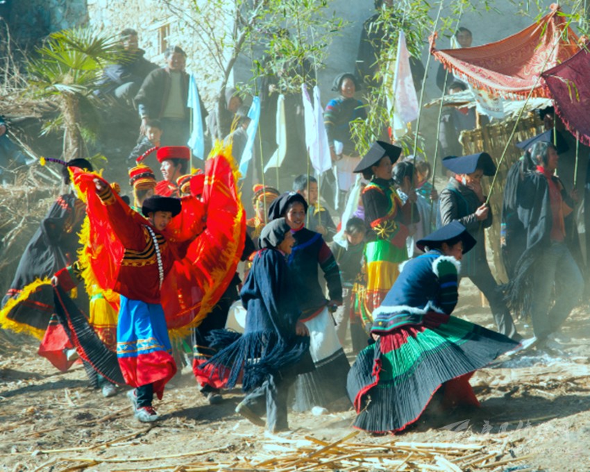 去年春節(jié)前夕,我就要和戀愛已久的尼坡烏各莫結(jié)婚了。這天,天朗氣清,喜鵲喳喳。爛堡子的親戚們來了,陰山隊(duì)的朋友們來了,體壯彪悍的小伙們來了,身著彩裙、婀娜多姿的姑娘們來了。于是在我家屋里門外到處都是親朋好友。他們有的在殺豬宰羊,準(zhǔn)備婚慶上的喜宴,有的幫著打掃房前門后的灰塵,有的在抽煙喝酒……總之,整個(gè)小小的山寨充滿著濃濃的喜慶氣氛。我喜滋滋、樂呵呵,帶著抑制不住的喜悅對客人們又是招呼又是斟酒倒茶。