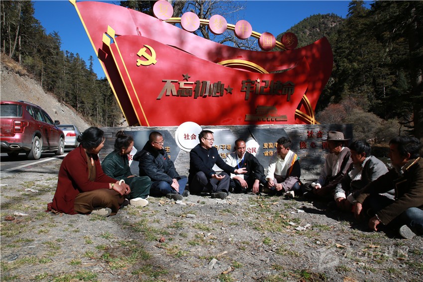 11月20日,記者乘坐的采訪車從稻城亞丁景區(qū)入口方向拐了個彎,沿著平坦的柏油路前行了26公里,木拉鄉(xiāng)麻格同村便映入眼簾,一塊黨旗造型的文化墻上寫著“不忘初心、牢記使命”幾個大字,墻體下方刻有社會主義核心價值觀內(nèi)容,讓人眼前一亮。幾個村民圍坐在一起,商量著什么。記者停車詢問得知,四川旅投集團駐村干部王雷正在和村“兩委”以及部分村民代表,商議動工修建棧道,為游客開展馬幫服務的事情。